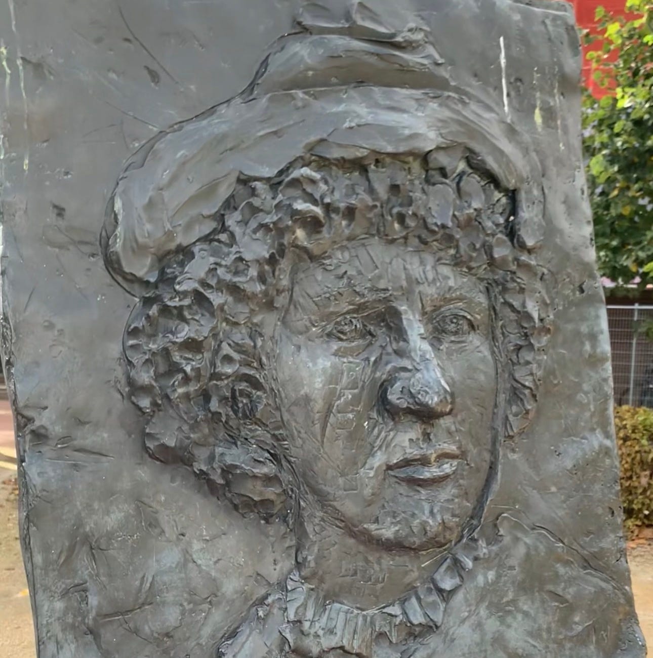“I don’t know, Peter,” the woman says, looking around the square as he inspects the statue. She notices an apartment complex with stick figures chalked to its brick walls, before she walks towards a placard behind the statue. Her husband turns over his map again, and reads the paragraph on Rembrandt’s early life in Leiden.